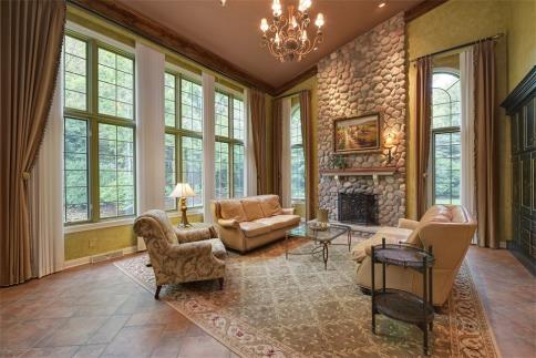 An impressive circle drive winds under mature trees, past lush lawns & a bronze statue and fountain to a stately brick home. Amazing architectural details and custom finishes enhance every room. A two-story foyer with circular staircase, beautiful woodwork, walls of windows, 10 to 18 ft coffered, tray and cathedral ceilings, 5 fireplaces, hardwood and heated tile flooring. The chef's kitchen with 3 sinks, 2 dishwashers, SubZero and U-Line refrigerator drawers, Thermadore convection & warming ovens, 6 burner gas stove, granite counters and custom cabinetry. Whether your gatherings are formal or casual, this home was designed to accommodate family and friends with exceptional space and amenities. A 2 story family room with floor to ceiling fireplace and windows is adjacent to the kitchen and sunny dinette. Multi-generational living is made easy with a second stair case with power lift and a bedroom with a private bath. Other bedrooms feature huge walk-in closets. A stunning master suite is complete with a fireplace, sitting area, two walk-in closets and a spa-like bath with whirlpool tub, multi head shower, and two separate vanities. An exposed lower level with a 5th fireplace, wet bar/kitchenette, a dance studio/exercise room, billiard room or 5th bedroom and a 4th full bath provide additional living and entertaining space. This home will express the high standard of living you deserve!