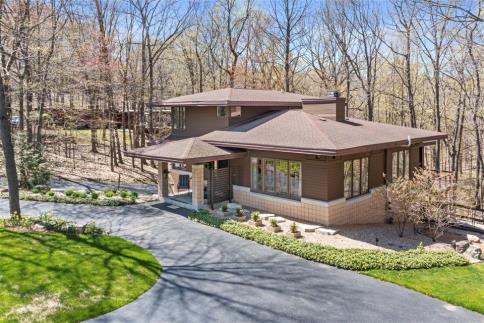 Uber private setting close to Friess Lake is this amazingly beautiful, move-in ready Prairie Style masterpiece! 4 bedroom, 3.5 bath home boasts an abundance of windows and skylight allowing wonderful natural light to permeate every corner. Large kitchen with stainless steel appliances and subway tile backsplash has wall of windows to 3 season room and deck beyond. Main floor master bedroom suite with complete bathroom remodel. Living room features hardwood floors and sleek contemporary fireplace. Main floor Laundry. 2 more BRs up each with window seats and share a sparkling clean bath. Walkout lower level includes family room with wet bar, media room and 3rd full bath. Enjoy the summer sitting on the large deck nestled amongst the trees overlooking the forest - like being in a tree house! HOA shared access to Little Friess Lake for kayaking and enjoying nature. Exterior painted in 2020, furnace and roof replaced in 2007. Part of the back lot is fenced.