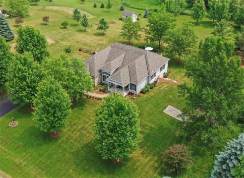 Impeccably maintained and sparkling clean original owner ranch-style home features 3 bedrooms, 3 full baths and an open-concept design flooded with natural light. The kitchen is a culinary haven with 2 islands, painted staggered cabinetry, Corian Counters and newer modern stainless steel appliances. Relax in the family room by the cozy gas fireplace. High ceilings add an airy feel throughout. Wonderful closet space and 36'' wide doorways! Expansive primary suite boasts a wall of windows framing the beautifully landscaped 1.6-acre lot. Ready for finishing, the exposed lower level offers a completed 3rd full bath, 8-ft high ceiling and full-sized windows. Convenient 3.5 car garage and adjacent mudroom. Outside enjoy an oversized paver patio and 12x16 shed with concrete floor and overhead door. Serene country subdivision with generous spacing between neighbors. Very comfortable and manageable home as is or finish the lower level (full bath already in) and double your square footage.