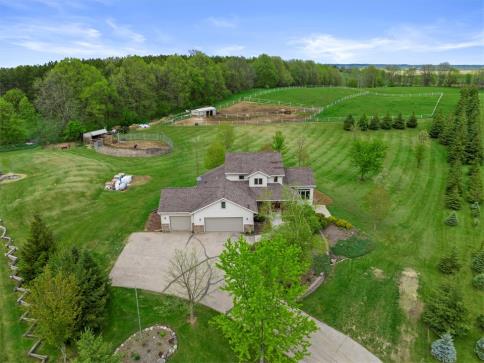 Discover the epitome of country living. 4-BR, 3.5-BA 1.5 story home nestled on 7.1 acres of scenic beauty. Home offers a comfortable LR complete w/beautiful stone, floor-to-ceiling GFP. Kitchen offers ample cabinet/counter space, separate pantry and door to deck. Main flr primary BR suite. 2 BRs/loft/full BA on upper. Finished LL incl 4th BR + 3rd full BA, FR and walkout to stamped concrete patio. Extra lge 3.5 car GA. Perfect for horse enthusiasts/hobby farm enthusiasts, it features 4 paddocks + additional pasture land, an Amish-built shed w/ 2 stalls and tack room, plus an additional run-in shelter for your equine companions. Enjoy sweeping views of the countryside from every angle. With ample space both indoors and out, this property is ready for you to create your dream rural retreat,