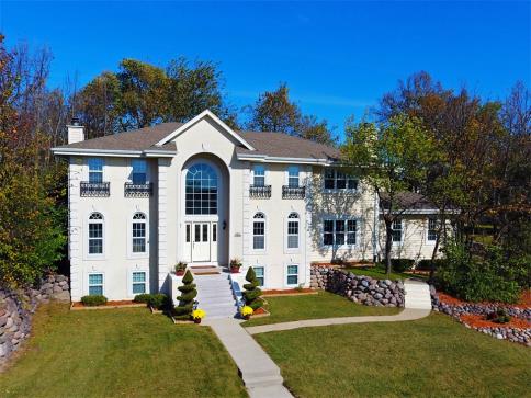 Fantastic BIG and BEAUTIFUL 4+ bedroom home in friendly subdivision! Enjoy 3 floors of living space that can easily accommodate your large family gatherings. Extensive “wall of windows” lines the back of the home overlooking huge deck and wooded wonderland. Kitchen hub includes new granite counters, cooktop, sink faucet and dishwasher. Be warmed by the embers of this home's 3 fireplaces including an impressive floor-to-ceiling stone and cherry fireplace in the 2 story family room. Amazing master bedroom suite offers NEW BATH with Carrera marble-topped vanities, bamboo scraped, walnut stained floors and sensual claw foot soaking tub. Finished lower level has full size window and features rec room, guest room, full bath and 2nd entrance to the garage. Other interior features include: tray ceilings, 6 panel + french doors, Italian Marble in foyer, sound system and epoxied garage floor. All new carpet throughout home. Storage shed on west side of home in woods. Cleared path in woods for kids to explore. Deck has gates at each end to keep kiddos or pets from roaming. Roof replaced with full tear off in 2004. 23 ACRE Kinderberg Park close by offers: baseball, ice skating, picnic shelter, playground, sledding hill, soccer, sprayground and tennis!