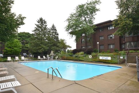 Fabulous Flip opportunity or build equity at an incredible price! Great space, large room sizes, fabulous master suite, bright sun room, living/dining combo, kitchen with breakfast bar, in unit laundry, heated parking. This spacious first floor unit is being offered to settle an estate. Large living area features a floor to ceiling stone fireplace, built-in book case & wet bar. Sunroom with southern exposure is surrounded in windows. The kitchen offers lots of cabinetry and is adjacent to the in -unit laundry room. The master suite is complete with a walk-in closet & double sinks. This unit is just steps away from the swimming pool. Walk to the library, parks, shopping, restaurants. This building in undergoing major renovations including new roof, hallway carpeting & light fixtures.