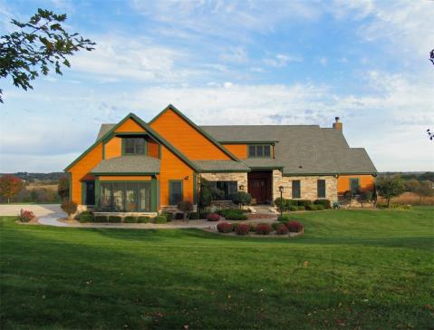 Prairie design, open concept home on peaceful & QUIET 48+ acres of gently rolling hills full of wildflowers and Wisconsin prairie grasses. Home to deer, pheasants, turkey, songbirds and breathtaking sunsets! Conservation Reserve Program rewards landowner $5,886 per year! Home's attention to detail and quality is self-evident throughout its 5,095 sq/ft of living space. Vaulted great room is open to the kitchen and dining room for easy entertaining. Main floor master suite features gorgeous view and 2 walk-in closets. Upper level has loft/library, bedroom and full bath. Finished walk out lower level includes big family room with natural fireplace, Mesquite wet bar and projection TV. Office, bedroom, full bath and work/storage area rounds out the lower level. Beautifully landscaped with easily maintained perennial gardens provide year round enjoyment. 4.5 car spotless garage with attached gardening room and 2nd set of stairs to lower level. Just 15 short minutes to HWY 41!