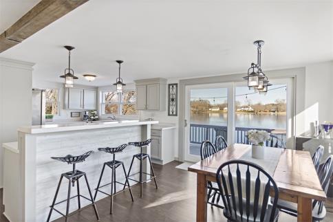 This chic and stylish lake home is ready for you to move in and be all settled before the spring rush! 70 feet of frontage on recreational Bark Lake is your backyard playground. In the winter, the lake offers great snowshoeing, cross-country skiing, snowmobiling and ice fishing. After a long day outside on trails, nothing beats curling up downstairs by a warm fire, coco in hand! Natural light and incredible lake views from most rooms. Spacious kitchen offers plenty of counter space, cabinets and island with raised breakfast bar. Open concept living allows conversation from living room to kitchen. Beautifully renovated full bath. Tiled entry/mudroom adjacent to attached garage. Lower level with full walkout and huge family room complete with raised hearth stone natural fireplace, half bath and bright laundry. Long list of updates include furnace and AC. No room untouched! WOW!